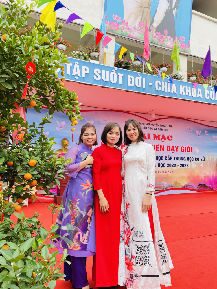 Ba cô giáo: Đào Thị Ngọc Lan (môn Ngữ văn), Phạm Thị Phương (môn Lịch sử), Trần Thị Thu Hà (môn Hoá học) đạt giải Nhất trong “Hội thi giáo viên dạy giỏi” cấp trường năm học 2022 -2023 đã đại diện tham dự hội thi. Phát huy trí tuệ của tổ chuyên môn, được sự ủng hộ nhiệt tình của các em học sinh, bản lĩnh, trí tuệ và tình yêu nghề đã giúp các cô toả sáng trên bục giảng để hoàn thành xuất sắc bài dự thi.