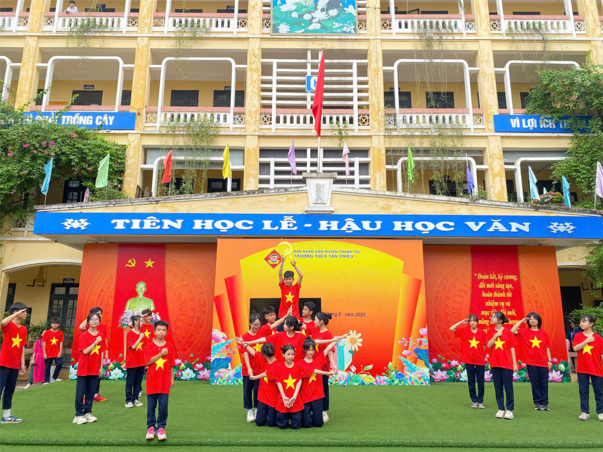 Sau nghi lễ chào cờ với tiếng “Quốc ca” vang lên hào hùng, học sinh lớp 7A1 và 7A2 đã mang đến ba tiết mục văn nghệ đặc sắc: “Khát vọng tuổi trẻ”, “Viết tiếp câu chuyện hoà bình” và “Tuổi trẻ thế hệ Bác Hồ”. Những lời ca, tiếng hát đầy xúc cảm đã thể hiện lòng biết ơn sâu sắc đối với vị lãnh tụ vĩ đại của dân tộc, đồng thời khơi dậy niềm tự hào và ý chí vươn lên của tuổi trẻ Tân Triều.