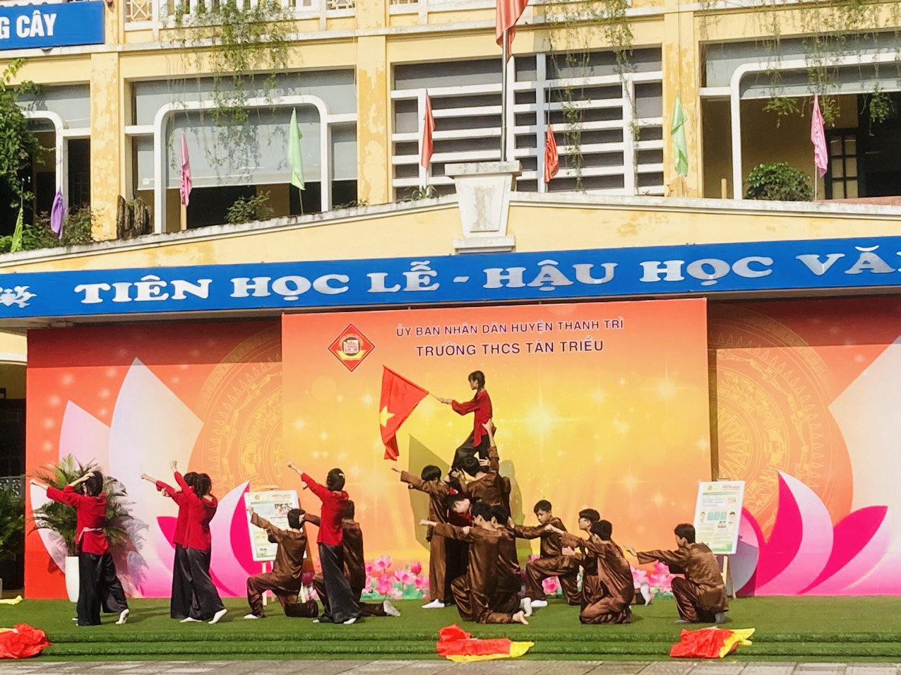 Thông điệp về sức mạnh đoàn kết, tinh thần vượt khó của đất nước, con người Việt Nam đã được các bạn học sinh lớp 8A2 thể hiện đặc sắc qua tiết mục múa khởi đầu: “Máu đỏ da vàng”. Từ đó, khơi dậy cho các em học sinh niềm tự hào dân tộc, lòng biết ơn đối với sự hi sinh, cống hiến của các thế hệ đi trước.