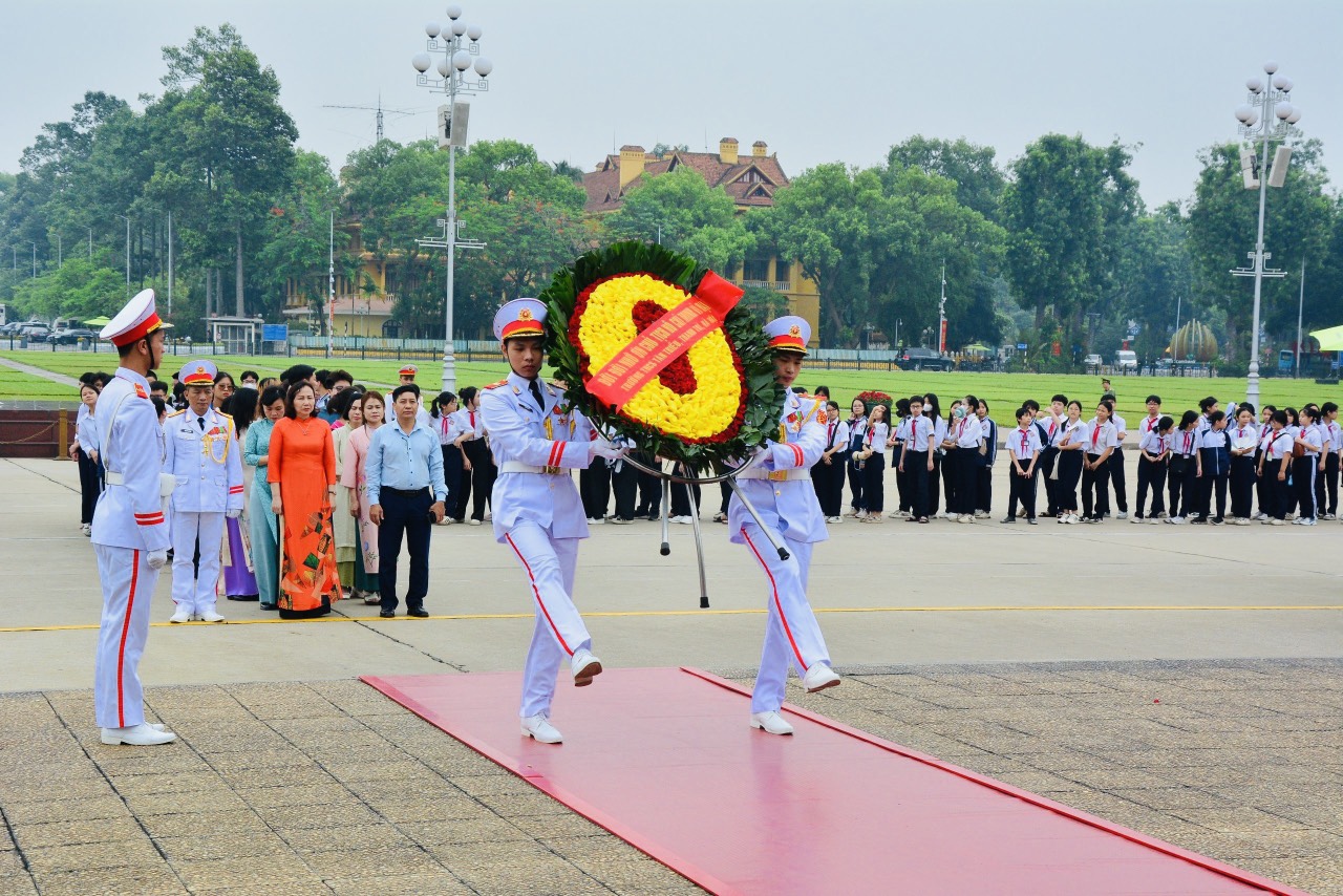 Sau Lễ Báo công, đoàn di chuyển lên xe tới Lăng Bác. Tại đây, đoàn đã được vào Lăng viếng Bác, được tham quan, nghe thuyết minh về nhà sàn, ao cá…những di tích lịch sử gắn với cuộc đời và sự nghiệp cách mạng vĩ đại của Người. Đặc biệt, đoàn được xem bộ phim tài liệu đặc biệt về những giờ phút cuối đời của Bác Hồ, các em đã không kìm được những giọt nước mắt nhớ thương Người. Hình ảnh về bài viết cuối cùng về “Người tốt, việc tốt” Bác còn để lại, cây đa cuối cùng Bác trồng ở xã Vật Lại (Ba Vì, Hà Nội ngày nay), buổi sinh hoạt vui cuối cùng với các cháu thiếu nhi… Cảnh ngôi Nhà sàn đã buông rèm, căn phòng với giường chiếu đơn sơ của Người giờ trở nên trống lạnh với những kỷ vật nằm im, lưu giữ lại một phần lịch sử… tất cả đã chạm đến trái tim của thầy và trò nhà trường.