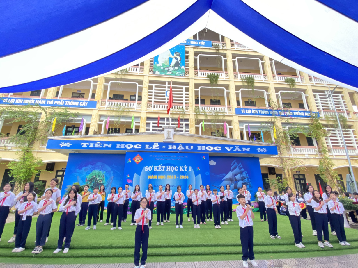 Cô giáo Phạm Thị Hồng Yến – Hiệu trưởng nhà trường đã rất phấn khởi biểu dương những thành tích nổi bật của thầy và trò nhà trường trong "Báo cáo sơ kết học kì 1 năm học 2023-2024". Cô cũng đặt ra những mục tiêu rất cụ thể mà thầy trò cùng nỗ lực phấn đấu để nâng cao chất lượng đại trà, chất lượng mũi nhọn, kết quả thi vào 10. Cô cũng nhấn mạnh tầm quan trọng của việc đầu tư cho các hoạt động ngoại khóa, trải nghiệm, dạy kỹ năng sống để tạo ra những sân chơi bổ ích góp phần giáo dục toàn diện cho học sinh vừa giúp các em được hưởng niềm hạnh phúc “ Mỗi ngày đến trường là một ngày vui”.