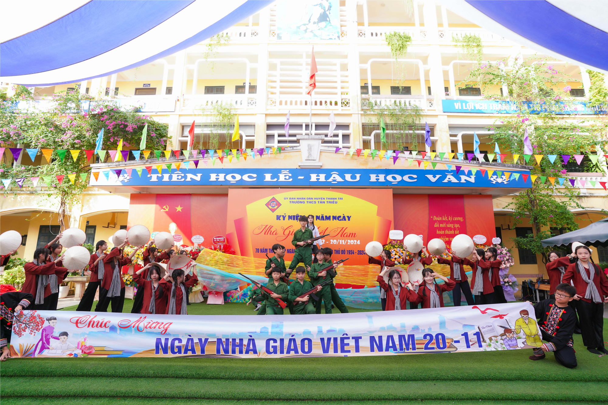Hòa trong không khí hân hoan, phấn khởi 70 năm thành lập ngành Giáo dục Thủ đô, Trường THCS Tân Triều long trọng tổ chức chương trình Kỷ niệm 42 năm Ngày Nhà giáo Việt Nam (20/11/1982-20/11/2024) – để gửi gắm những lời cảm ơn, những tình cảm chân thành nhất đến các thầy cô. Đây là dịp để các em HS gửi gắm những lời cảm ơn, những tình cảm chân thành nhất đến những người thầy giáo, cô giáo đáng quý - “người nghệ sỹ tâm hồn” và là những “người chiến sĩ trên mặt trận văn hóa”.