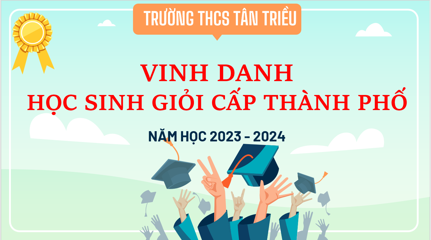 Nhà trường xin nhiệt liệt chúc mừng thành công của các đội tuyển HSG Ngữ văn, Địa lí, Giáo dục thể chất; chúc mừng các thầy cô giáo chủ nhiệm, các thầy cô giáo phụ trách các đội tuyển bằng trí tuệ, bản lĩnh vững vàng đã dẫn dắt các em vượt qua mọi khó khăn trên hành trình về đích. Nhà trường cũng chúc mừng và cảm ơn sự đồng hành, sẻ chia của các bậc phụ huynh đã góp phần tạo nên: BẢNG VÀNG THÀNH TÍCH CỦA HỌC SINH TRƯỜNG THCS TÂN TRIỀU NĂM HỌC 2023 – 2024.