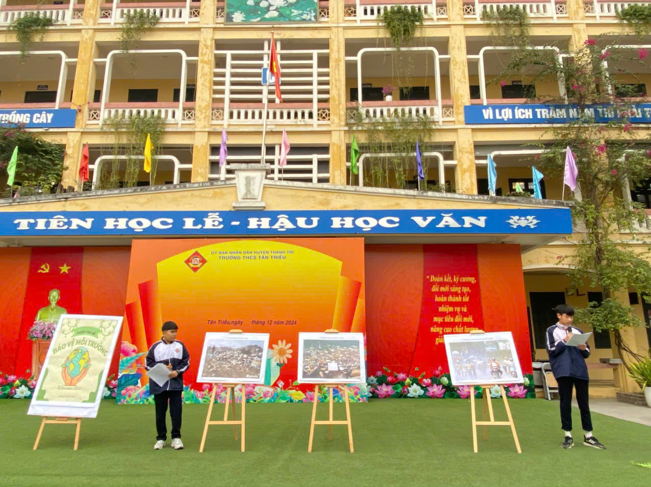 Kết thúc chương trình là những giải pháp rất thiết thực để bảo vệ môi trường xung quanh chúng ta. Buổi sinh hoạt gửi đến các bạn học sinh toàn trường thông điệp hãy có ý thức hơn trong việc giữ gìn, bảo vệ cảnh quan lớp học, trường học. Hình thành thói quen dọn dẹp, thu gom rác và vệ sinh lớp học, trường học mỗi ngày Thực hành thông điệp “Mắt thấy rác, tay nhặt ngay”, “Mỗi ngày chăm sóc một cây xanh” “ Mỗi năm trồng thêm một cây xanh”, “ Tiết kiệm điện nước để gìn giữ tài nguyên”, “Nói không với rác thải nhựa”... Học sinh trường THCS Tân Triều sẽ chung tay cùng nhau xây dựng và gìn giữ một môi trường học tập Sáng – Xanh – Sạch – Đẹp.